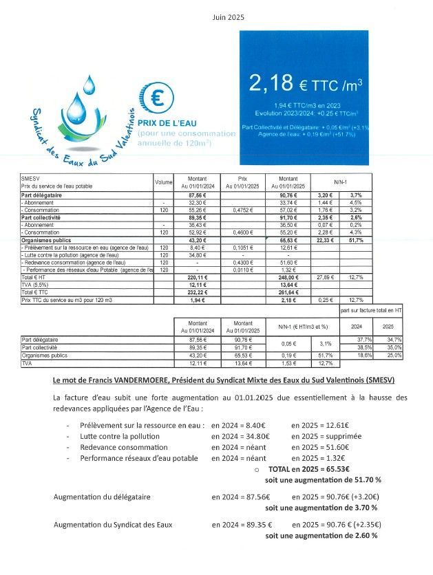Administration 04 75 59 34 85 Pour tout problème d'eau potable appeler VEOLIA au 09.69.32.34.58, pour toute demande de branchementwww.service.eau.veolia.fr